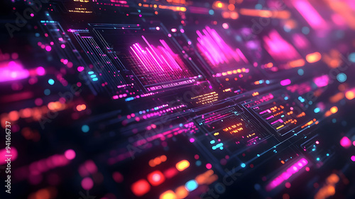 Abstract 3D Futuristic Digital Interface with Neon Lights