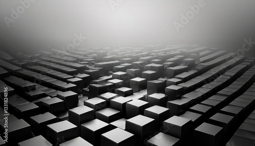 Abstract 3d geometric background with monochromatic layered cubes and shadows