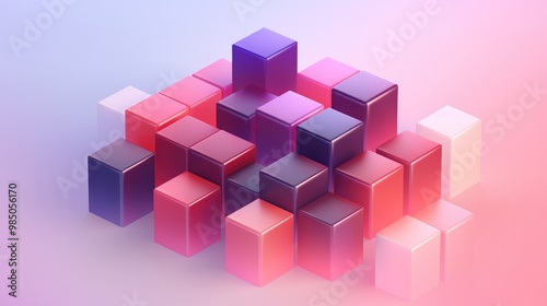 Abstract 3D geometric shapes arranged in a cluster on a pastel background.