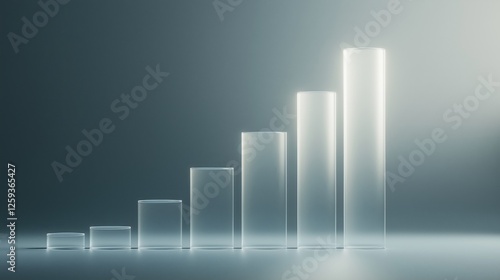 Abstract 3D glass graph symbolizing financial growth, set against a minimalistic backdrop with soft gradient lighting.