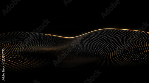 Abstract 3D Golden Particle Landscape Forms a Smooth Wave on a Black Background