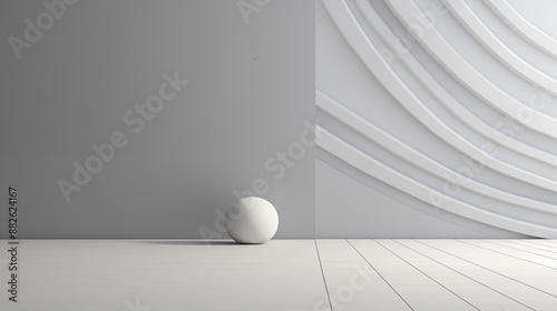 abstract 3d interior scene with white ball and sunlight with gray background color.