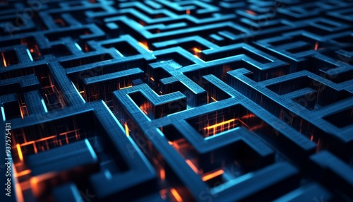 Abstract 3D Maze with Glowing Lines.