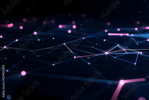 Abstract 3D Network Illustration Forms Complex Connections with Glowing Nodes and Lines