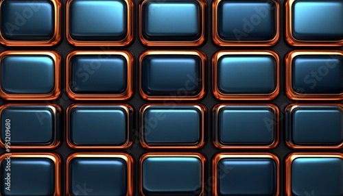 Abstract 3D Pattern of Blue and Copper Rounded Rectangles