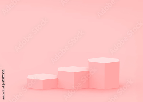 Abstract 3d pink hexagon podium minimal studio background.