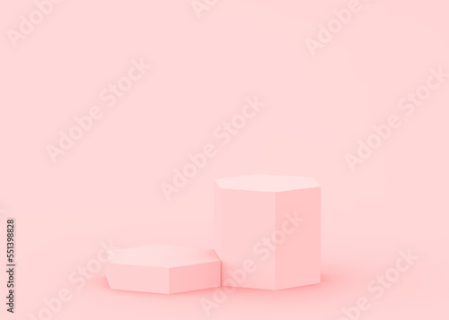 Abstract 3d pink hexagon podium minimal studio background.