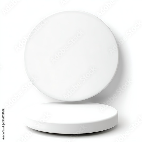Abstract 3D podium with floating geometric shapes