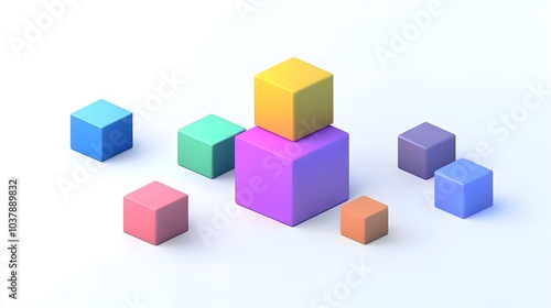 Abstract 3d render, geometric composition, colorful background design with cubes