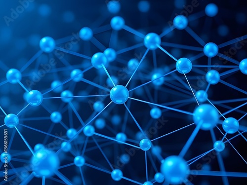 Abstract 3D Render of a Molecular Structure, Science, Technology, Connectivity, Network, Biology, Digital, Blue.