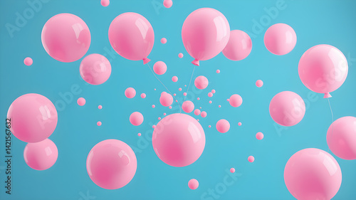 Abstract 3D render of floating pink balloons that collide with each other Generative AI