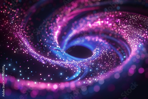 Abstract 3D render of neon particles with swirling motion and glowing effects , created ai