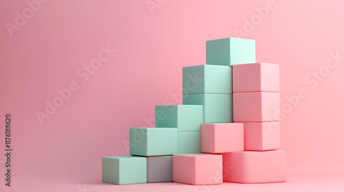 Abstract 3D render of pink and mint cubes forming an ascending gradient