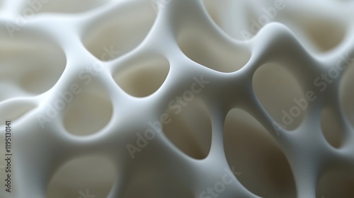 Abstract 3D rendered image of a porous, organic structure. The off-white, textured surface creates a surreal and intriguing visual.