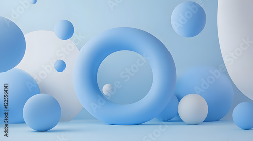 Abstract 3D Rendering background with blue bouncing balls.