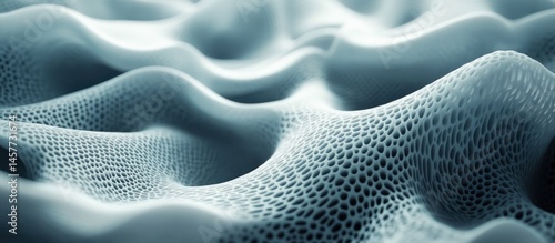 Abstract 3D rendering of a textured, wavy surface with a porous, honeycomb-like pattern.