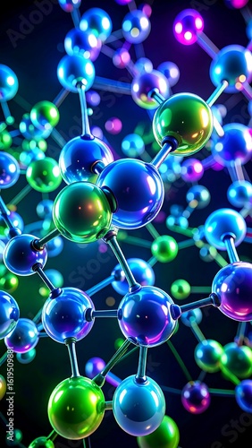 Abstract 3D rendering of vibrant, interconnected spheres, resembling a molecular structure