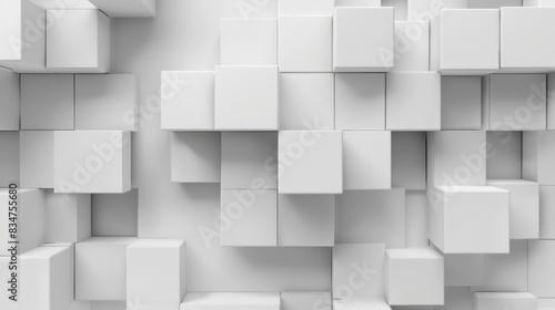 abstract 3d square white technology communication concept background. Random shifted white cube square boxes block background wallpaper banner with copy space