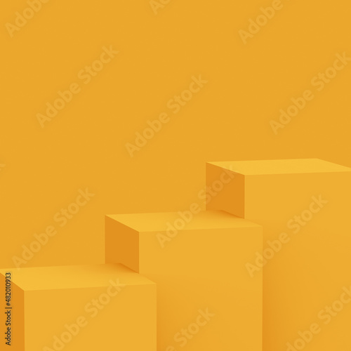 Abstract 3d yellow cube and box podium minimal scene studio background.