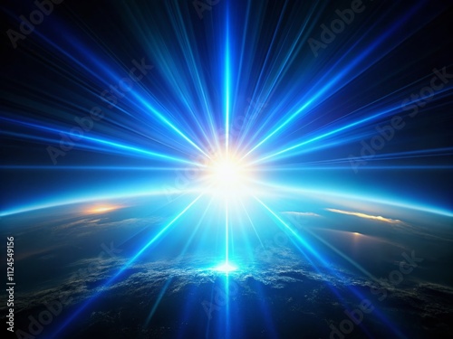 Abstract Aerial Photography of Lens Flare Blue Glow Light Effects Over Black Background for Creative Design and Screen Blending Mode with Sun Burst and Glare Overlays