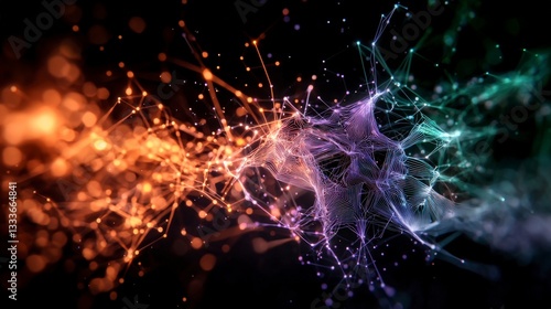 Abstract AI Cyberspace Digital Network Connections and Vibrant Hues