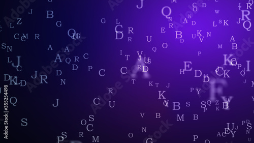 Abstract alphabet ornament on color background. Education writing design concept. Random letters fly. 3d illustration.