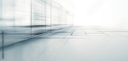Abstract architectural rendering with lines and shapes on a bright background, creating a sense of depth and perspective.