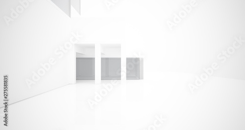 Abstract architectural white interior of a minimalist house with large windows.. 3D illustration and rendering.