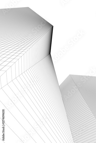 Abstract Architectural Wireframe: Geometric Cityscape with Minimalist Perspective