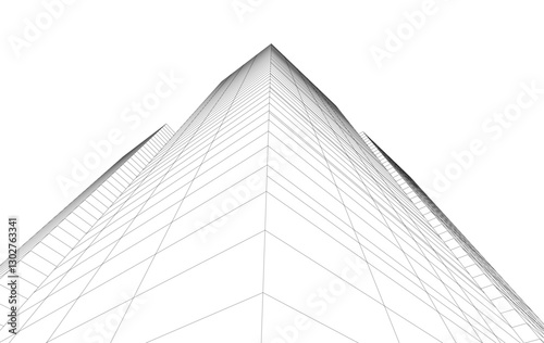 Abstract Architectural Wireframe of Modern Skyscrapers - 3D Perspective View