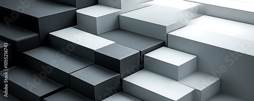 Abstract arrangement of black and white geometric blocks creating a modern aesthetic.