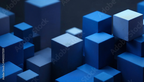 Abstract arrangement of blue geometric shapes creating a visually striking composition in a dark setting