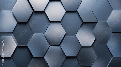 Abstract arrangement of brushed steel hexagons, metallic sheen, highlighting industrial aesthetics with a focus on precision and uniformity