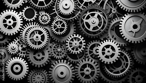 Abstract Arrangement of Interlocking Gears and Cogs in Mechanical System
