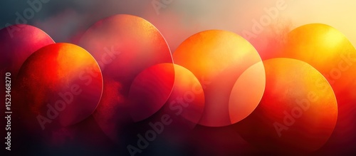Abstract arrangement of overlapping, vibrant circles of orange and red hues.