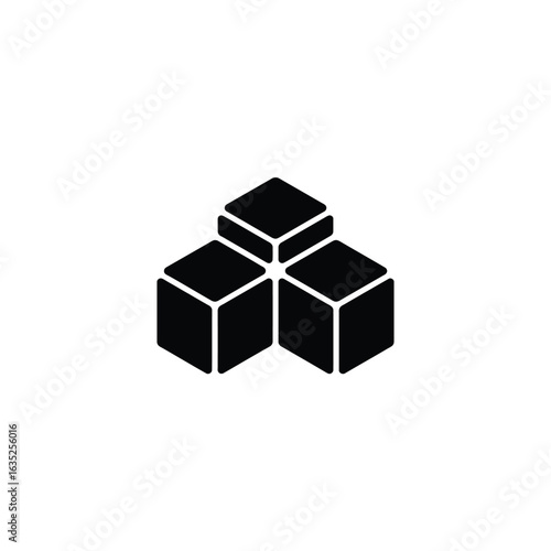 Abstract Arrangement Three Stacked Black Cubes on Transparent Background