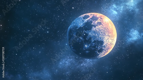 Abstract art of two moons with cosmic clouds and stars image