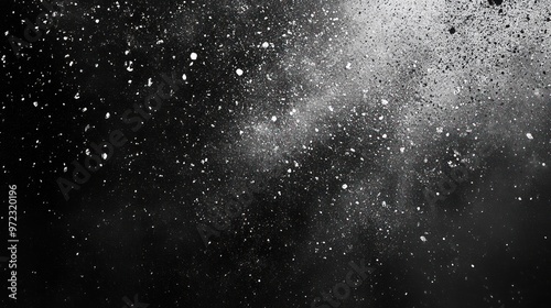Abstract art showcasing white paint splatters against a dark background, creating a dynamic and vibrant atmosphere.
