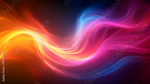 Abstract Art: Wavy Lines of Vibrant Colors in Dark Background