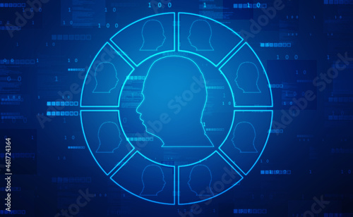 Abstract Artificial intelligence. Technology web background. Human head outline with Connected lines, Virtual concept, futuristic abstract background