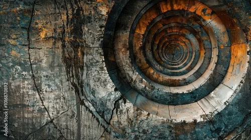 Abstract artwork showcases a circle background. The motion and circular design are evident.