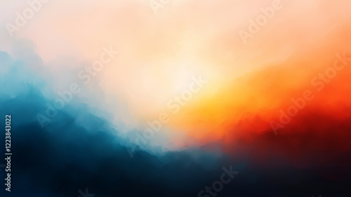 abstract artwork with energetic tones transitioning from blue to orange, creating vibrant and dynamic atmosphere.