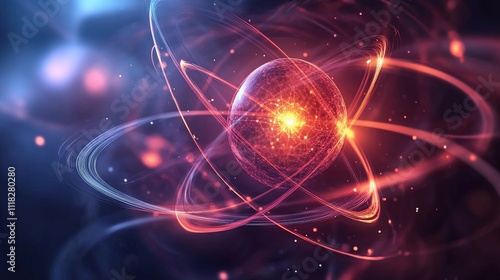 Abstract atom model with glowing energy orbits. Perfect for science, technology, or energy concepts.