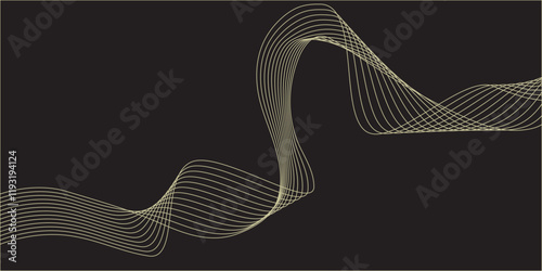 Abstract backdrop with luxury golden and colorful waves on dark background. Modern technology background, wave design. Vector illustration