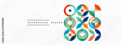 Abstract background - minimalist circles and round elements composition with varying sizes circles and other geometric shapes. The elements are arranged symmetrically in a grid-like pattern