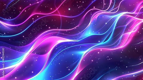 Abstract Background - Neon Wave, Pink and Blue Abstract Background With Sparkling Stars