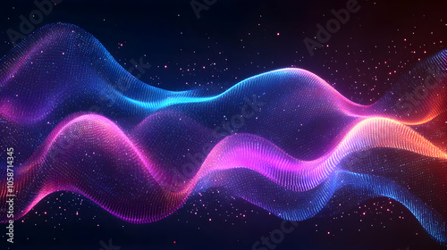 Abstract Background - Wavy Blue and Pink Light Trails with Particles