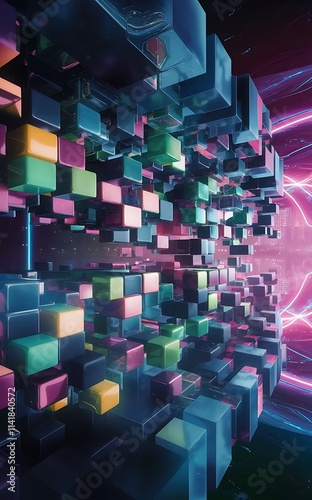 Abstract background 3d cubes cubic elements and blocks techno or business concept for wallpaper banner background landing page