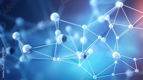 Abstract background Atom molecule structure , Abstract futuristic micro molecules with balls on blue background.. Laboratory. Generative AI