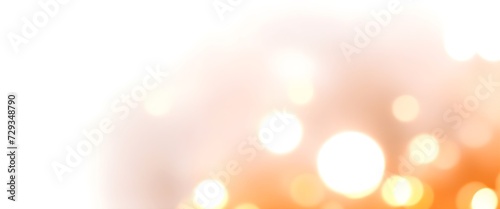 Abstract background banner with bokeh. White backdrop with subtle orange bokeh lights and empty space.